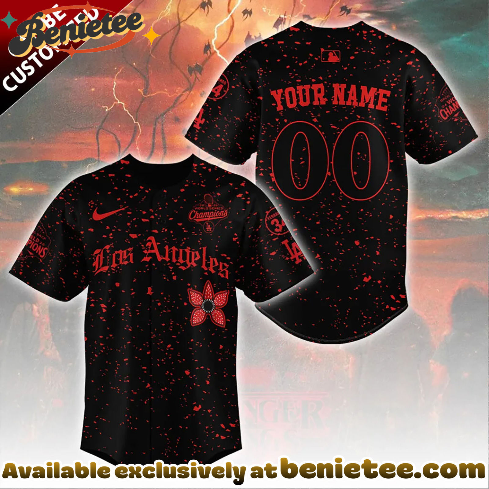 Personalized Los Angeles Dodgers 2025 Champions x Stranger Things Baseball Jersey – Ver 2