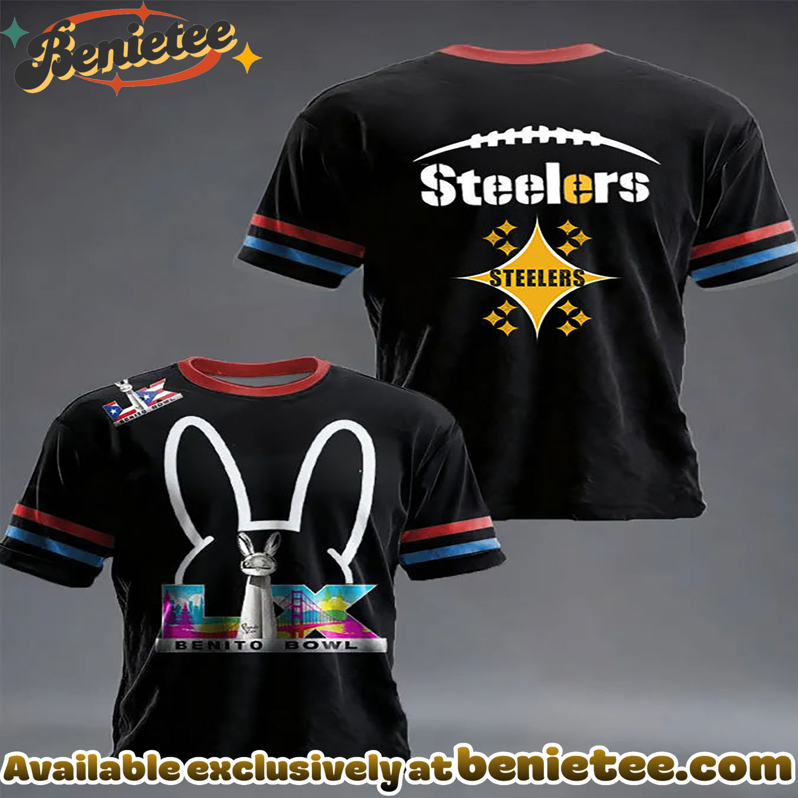 Step back in time and celebrate the legendary Pittsburgh Steelers with our exclusive Benito Bowl Retro Ringer T-Shirt. This vintage-inspired tee is perfect for any die-hard fan looking to showcase their team spirit with a touch of classic style. Featuring a unique design that harks back to iconic Steelers moments, this shirt is more than just apparel; it’s a piece of football history. Crafted for comfort and durability, it’s ideal for game days, casual outings, or simply lounging at home while cheering on your favorite team. Don’t miss out on owning a piece of Steelers memorabilia that stands out from the crowd. Grab yours today and relive the glory!