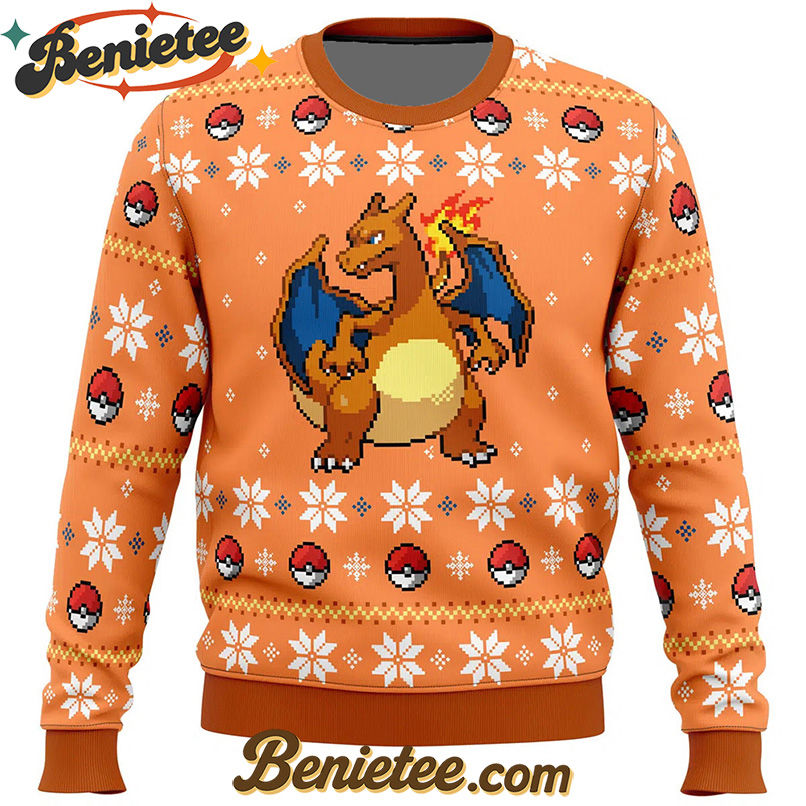Get ready to make this holiday season legendary with the ultimate Pokemon Christmas Blaze Charizard Ugly Christmas Sweater! This isn’t just any festive apparel; it’s a fiery declaration of your love for all things Pokemon, blended perfectly with the cozy, quirky charm of an ugly Christmas sweater. Imagine Charizard, the iconic fire-type Pokemon, decked out in holiday cheer, perhaps with a Santa hat perched on its head or surrounded by festive snowflakes. This sweater is designed to be a conversation starter, a warm embrace of nostalgia, and a bold statement piece for any holiday party, family gathering, or even just a cozy night in watching your favorite Pokemon episodes. Embrace the warmth and power of Charizard while spreading holiday joy. Don’t miss out on owning this unique piece of Pokemon memorabilia that will surely set your Christmas ablaze with excitement and style. Grab yours today and let your inner trainer shine!