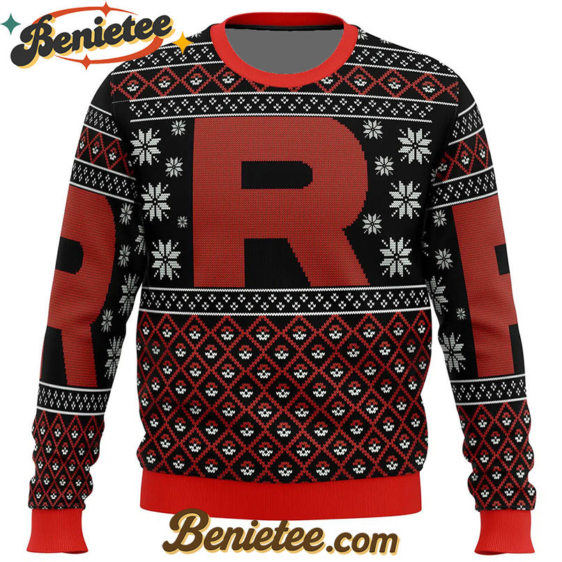 Celebrate the season with the Pokemon Team Rocket Red Black Ugly Christmas Sweater — a playful, cozy ugly sweater made for joyful holiday moments.