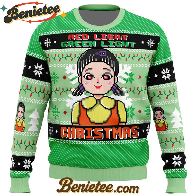 Get ready to sleigh the holiday season with a touch of unforgettable drama! Our Red & Green Light Squid Game Ugly Christmas Sweater is the ultimate conversation starter, blending the cozy tradition of ugly Christmas sweaters with the thrilling suspense of the globally acclaimed series. Imagine the delighted (or perhaps terrified) gasps as you arrive at your next holiday gathering, proudly sporting this unique design. It’s not just a sweater; it’s a statement piece that screams festive fun and pop culture savvy. Perfect for holiday parties, casual get-togethers, or even just lounging at home while re-watching your favorite intense moments, this sweater is crafted for comfort and designed to turn heads. Don’t miss out on the chance to own this iconic piece of seasonal apparel – buy yours today and make this Christmas unforgettable!