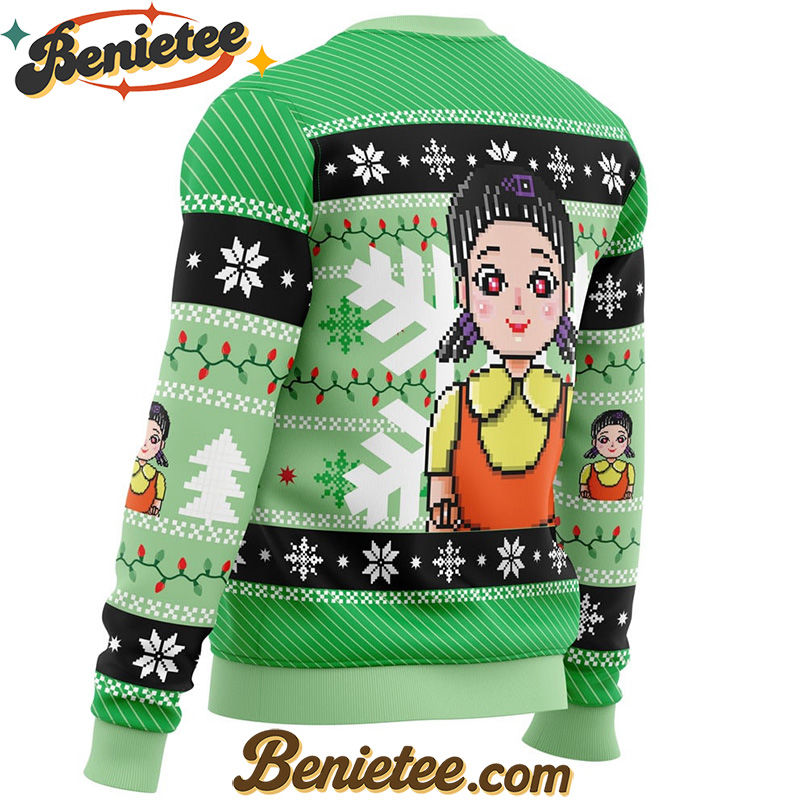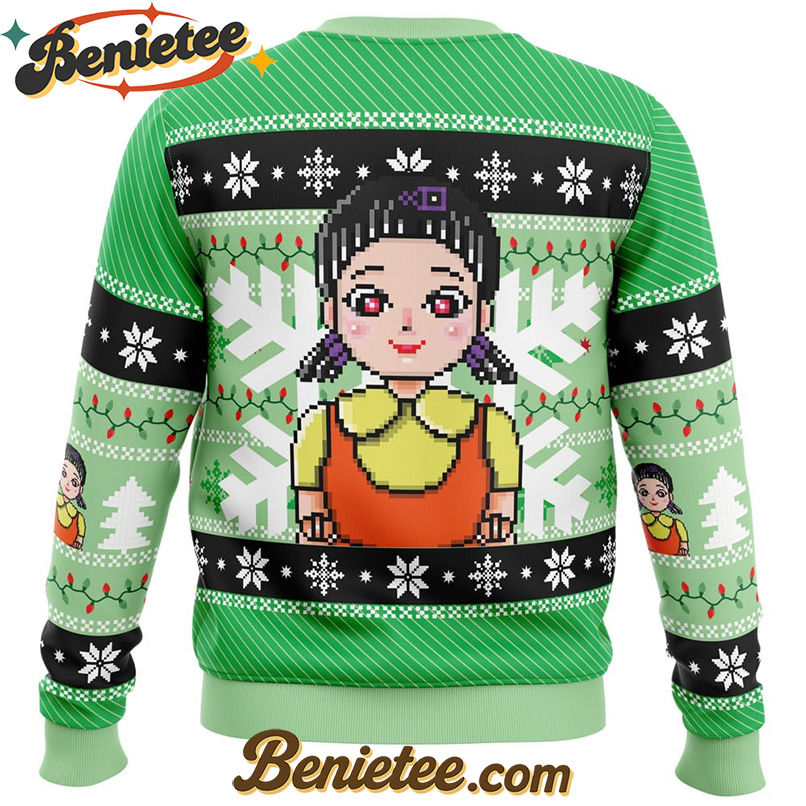 Embrace the Festive Fear with the Red & Green Light Squid Game Ugly Christmas Sweater!