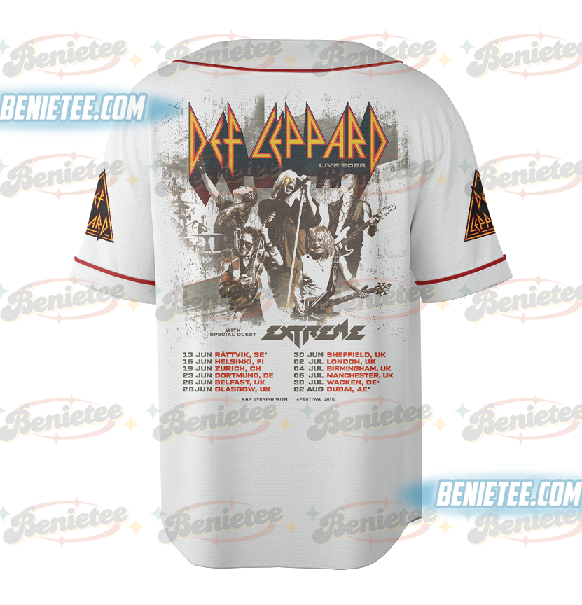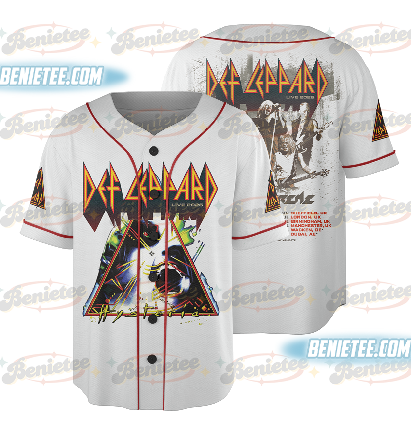 Retro Def Leppard Baseball Jersey, Def Leppard Hysteria 1988 Tour Jersey