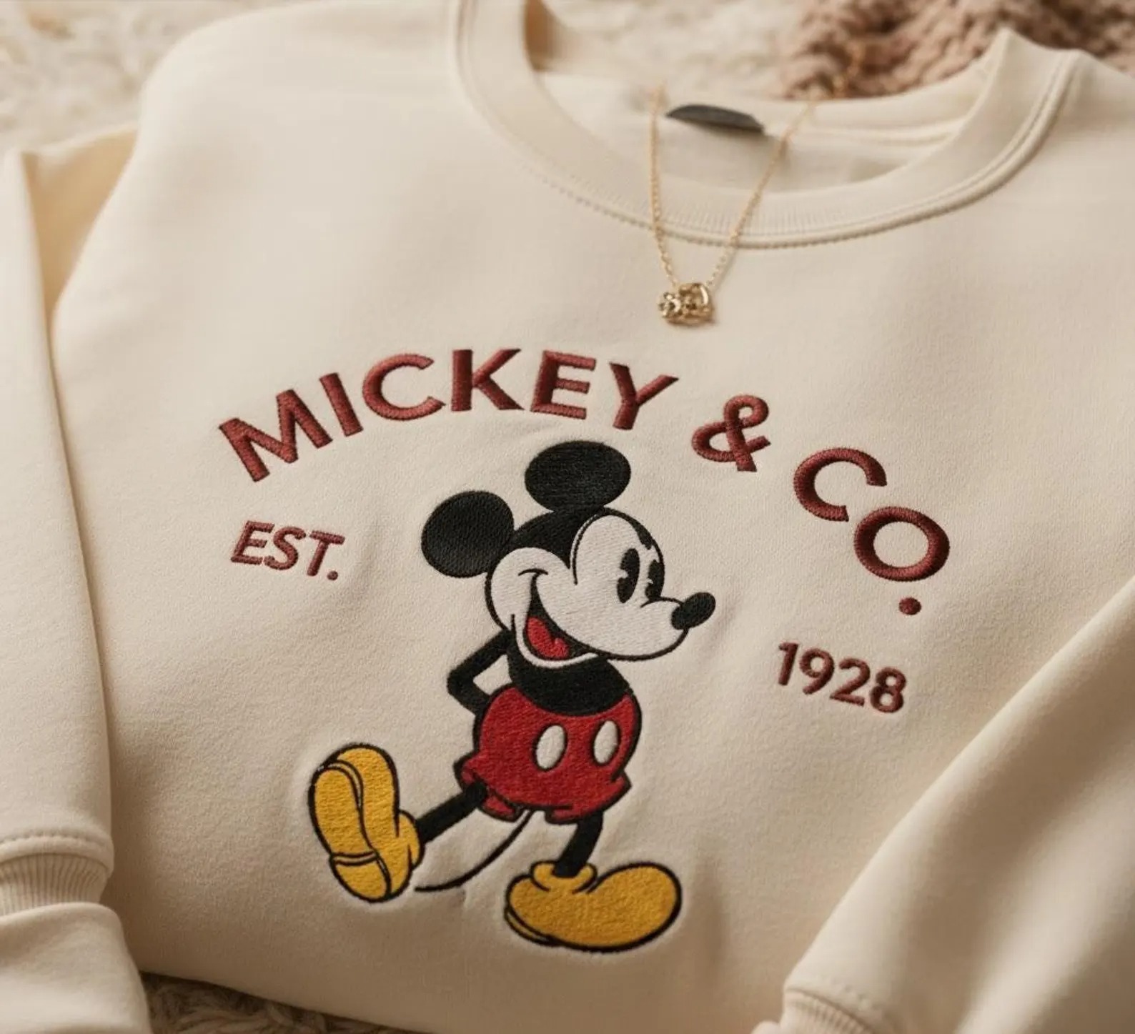 - This item: Retro Mickey Mouse Character Embroidered Sweatshirt, Cartoon 1928 Embroidered Crewneck, Disney Embroidered Shirt