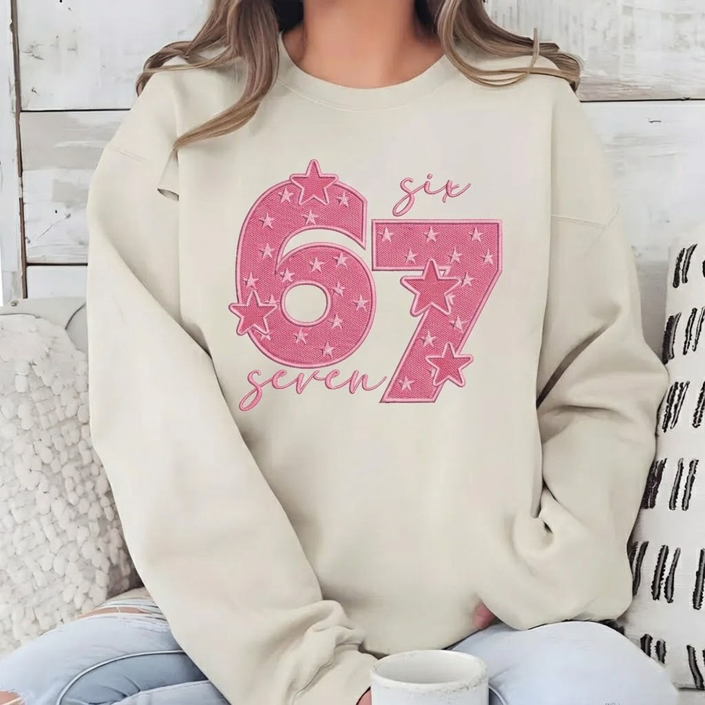Step back into a world of vintage charm with our “Sixty Seven” Embroidered Sweatshirt. This piece features a bold, varsity-style “67” design, meticulously filled with a playful star pattern and accented with elegant cursive script. Combining a retro athletic aesthetic with a soft, modern color palette, this sweatshirt is the perfect “go-to” pullover for those who love timeless fashion with a celestial twist. Whether you’re a fan of 60s/70s nostalgia or just looking for a standout piece for your casual wardrobe, this sweatshirt delivers both comfort and style.