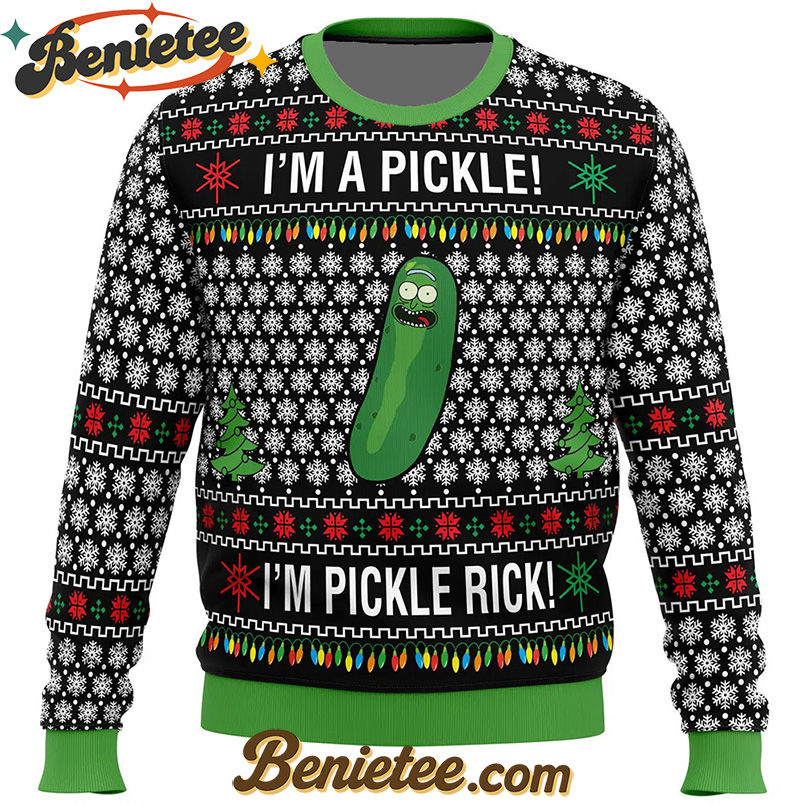 Get Your Rick and Morty Pickle Rick Ugly Christmas Sweater Today!