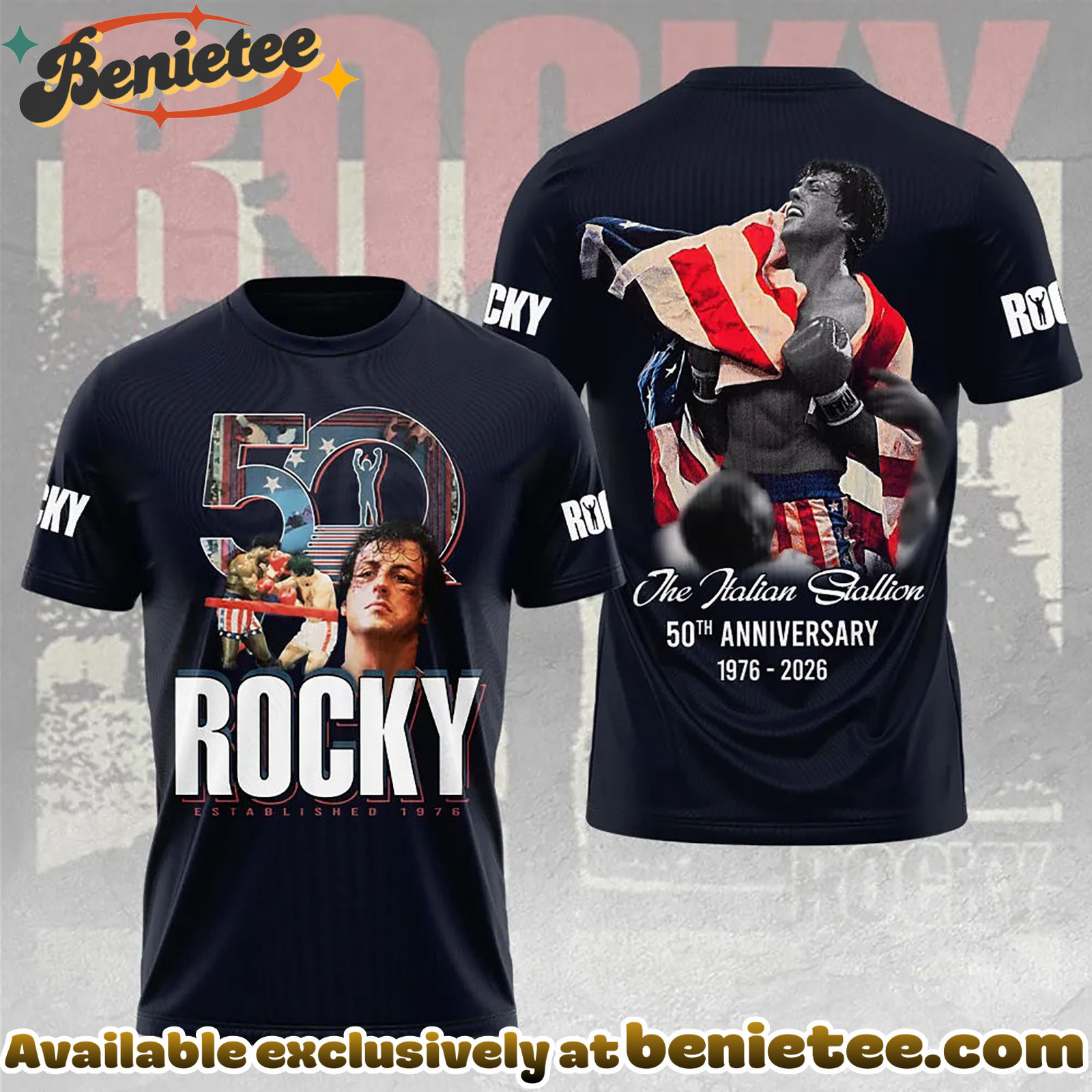 Step into the ring and showcase your love for Rocky Balboa with our special 50th Anniversary 3D apparel. This collection captures the essence of the films, from the triumphant moments to the enduring spirit of the characters. The innovative 3D design adds a dynamic layer to your favorite Rocky motifs, making a bold statement wherever you go. It’s more than just clothing; it’s a tribute to the enduring legacy of a true champion and a symbol of overcoming adversity. Perfect for movie buffs and fitness enthusiasts alike, this apparel lets you wear your passion proudly. Grab your favorite piece from this limited-edition collection and join the celebration of Rocky’s incredible 50-year journey.