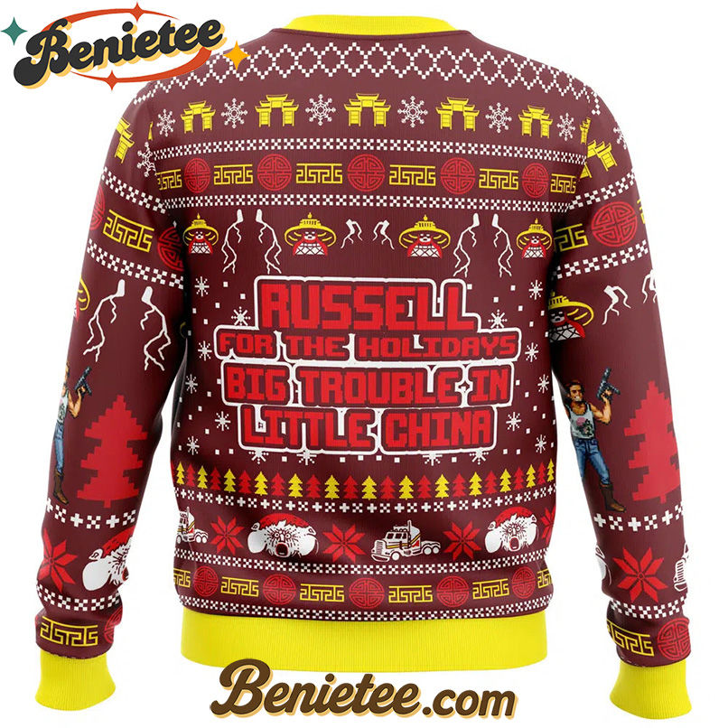 Key Features of Russell for the Holidays Big Trouble in Little China Ugly Christmas Sweater