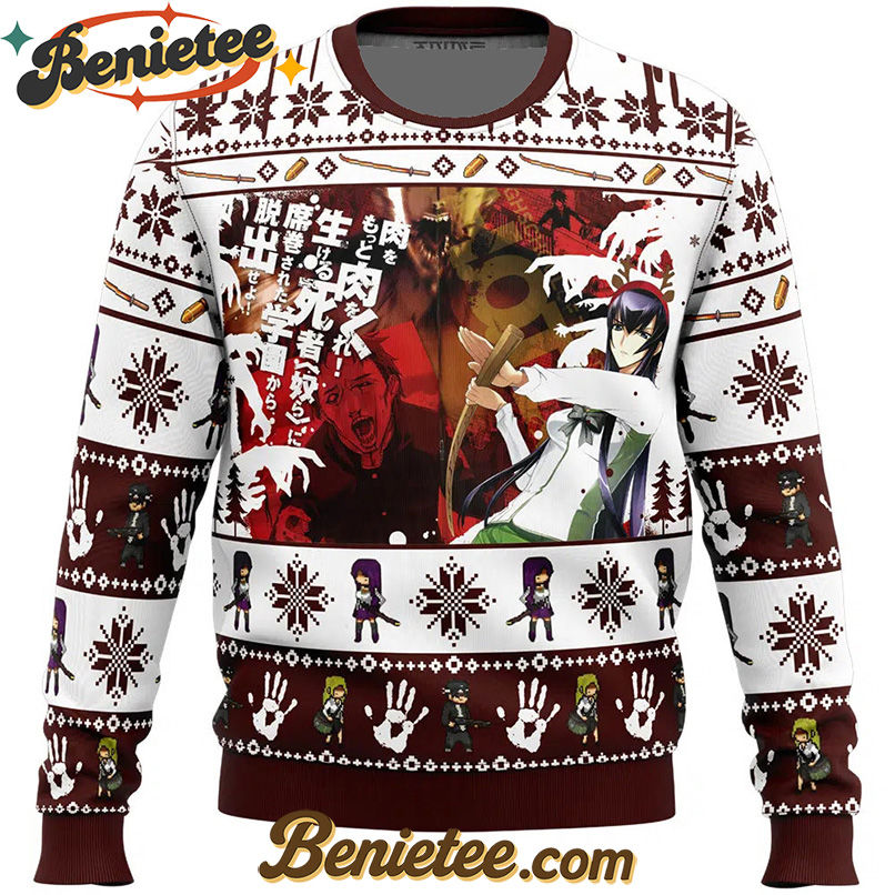 Embrace the Apocalypse with a Saeko Busujima Ugly Christmas Sweater – Buy Yours Now!