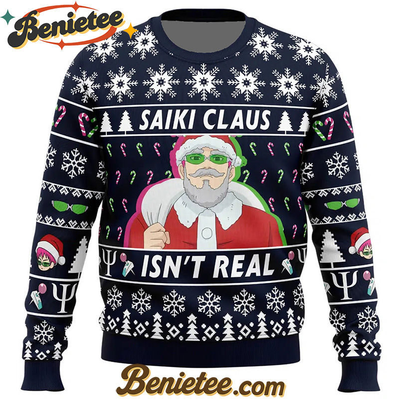 Why Choose Saiki Claus Isn’t Real The Disastrous Life of Saiki K Ugly Christmas Sweater?