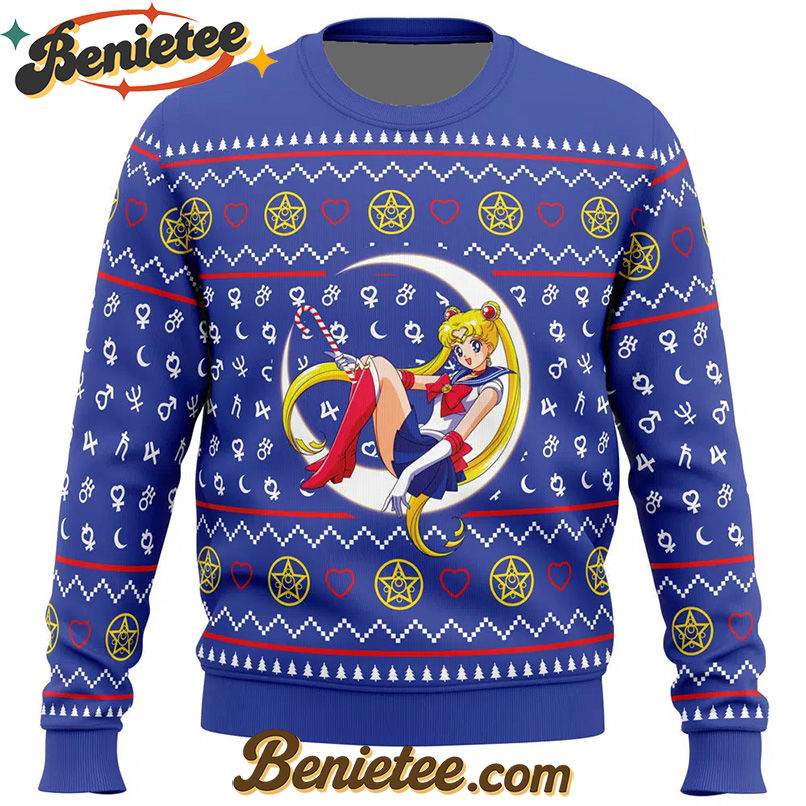 Celebrate the season with the Sailor Moon Sitting on Moon Ugly Christmas Sweater — a playful, cozy ugly sweater made for joyful holiday moments.