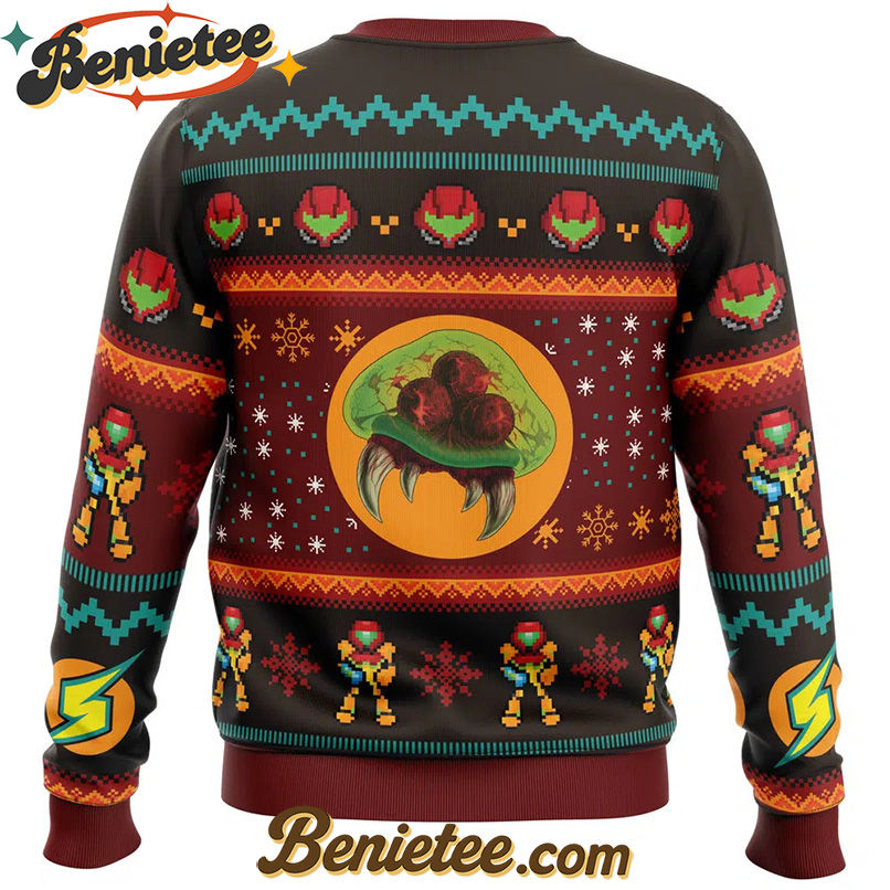 Get ready to defend the galaxy and spread some holiday cheer with the ultimate Samus Metroid Ugly Christmas Sweater! This unique and eye-catching sweater is perfect for any fan of the iconic Metroid series. Featuring a retro-inspired design that channels the spirit of classic ugly Christmas sweaters, it’s sure to be a conversation starter at any holiday gathering. Imagine showing up to your next party, office holiday event, or family get-together in this festive and fandom-fueled attire. It’s more than just a sweater; it’s a statement piece that celebrates your love for Samus Aran and her epic adventures across the cosmos. Don’t miss out on the chance to own this must-have piece of gaming memorabilia this holiday season. Order your Samus Metroid Ugly Christmas Sweater today and make this Christmas the most intergalactically stylish one yet!