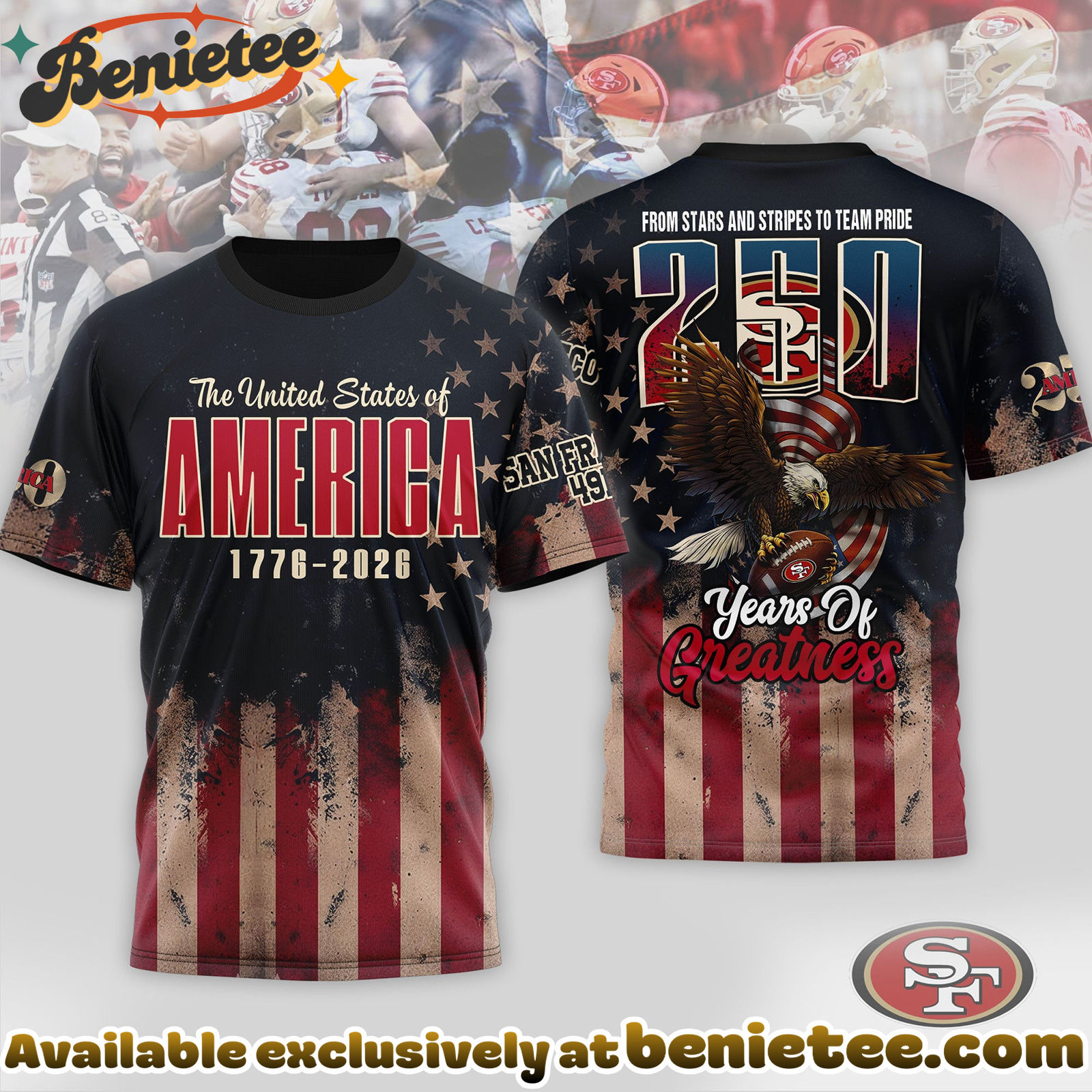 - ⚙️ Made to Order: Each San Francisco 49ers Premium NFL 250th Anniversary Of America 3D Shirt, Hoodie, Sweatshirt is created individually after purchase to ensure a fresh, premium finish.