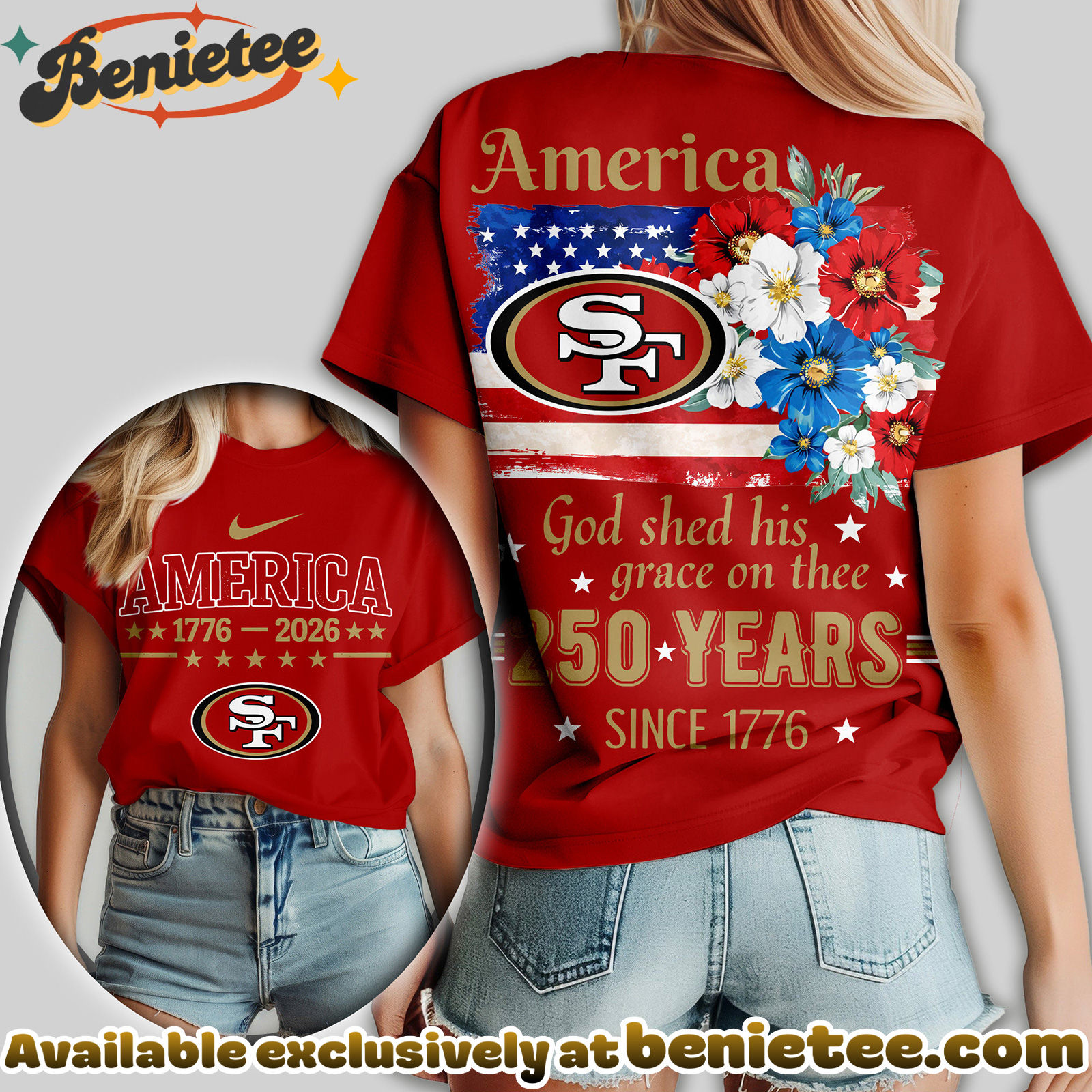 - ⚙️ Made to Order: Each San Francisco 49ers Premium NFL America God Shed His Grace On Thee Women Tshirt, Hoodie, Sweatshirt is created individually after purchase to ensure a fresh, premium finish.