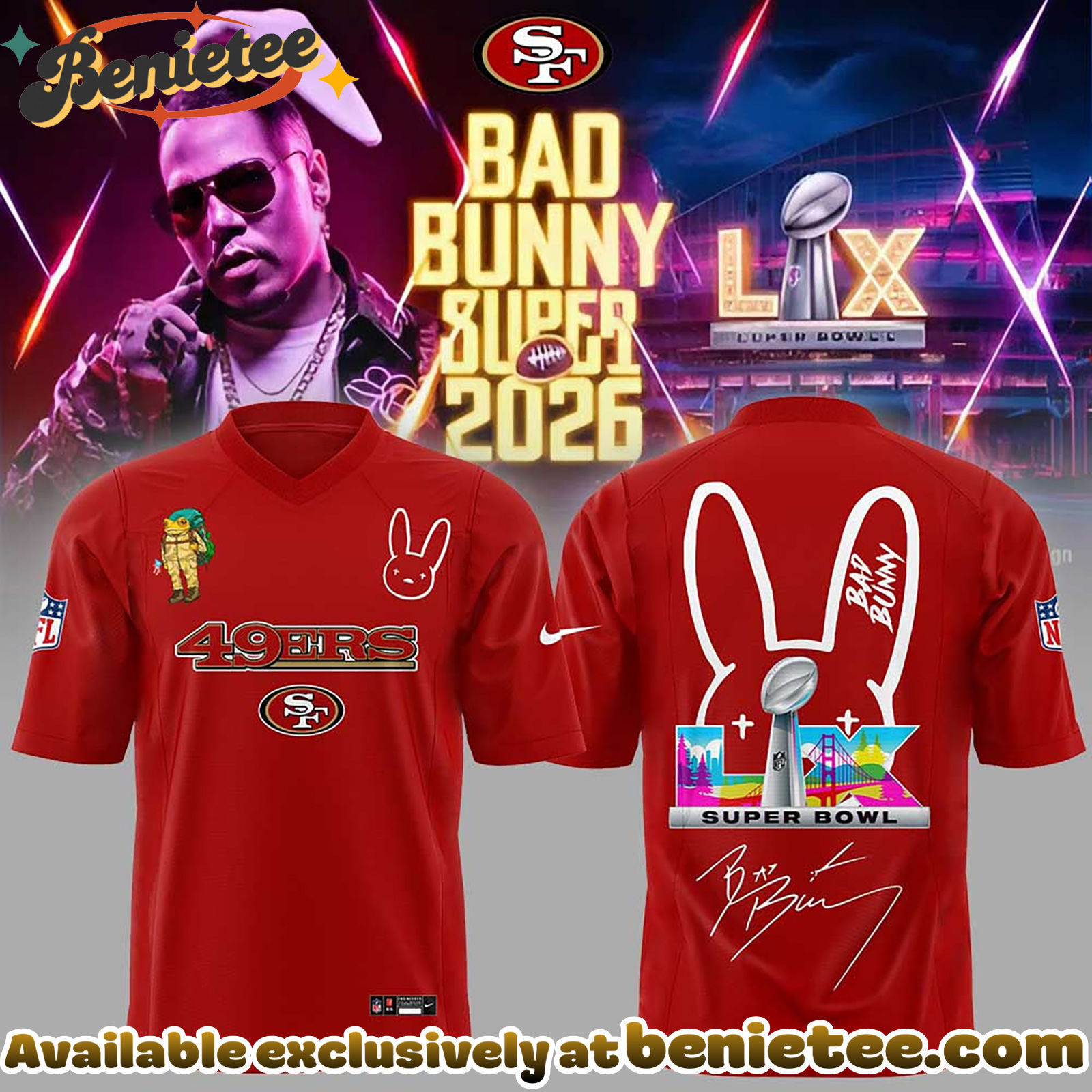 ⚡ Grab your San Francisco 49ers x Bad Bunny Super Bowl 2026 Football Jersey V2 NFL Jersey POD now and gear up like a true fan! 🏈🔥