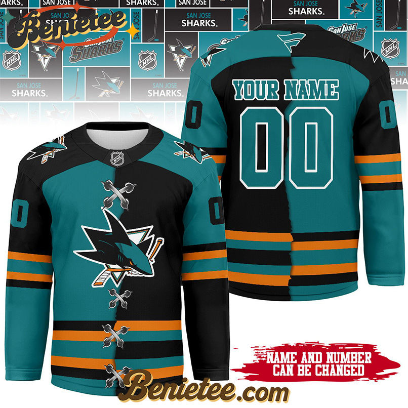 Show Your San Jose Sharks Pride with a Premium Personalized Split Color Hockey Jersey – Order Yours Today!