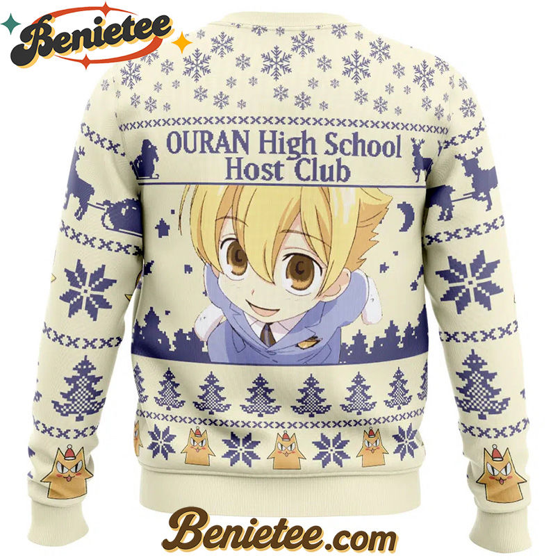 Embrace the festive spirit with a twist of otaku humor with our “Santa, How Much Do I Have To Pay You Ouran High School Host Club Ugly Christmas Sweater.” This unique piece of apparel is perfect for any fan of the beloved Ouran High School Host Club looking to add a touch of playful irreverence to their holiday wardrobe. Featuring a design that cleverly blends classic Christmas sweater aesthetics with iconic imagery from the anime, this sweater is guaranteed to be a conversation starter at any holiday gathering. Don’t miss out on the chance to showcase your love for the Host Club in a fun, festive, and undeniably ugly Christmas sweater style. Order yours now and make this holiday season unforgettable!