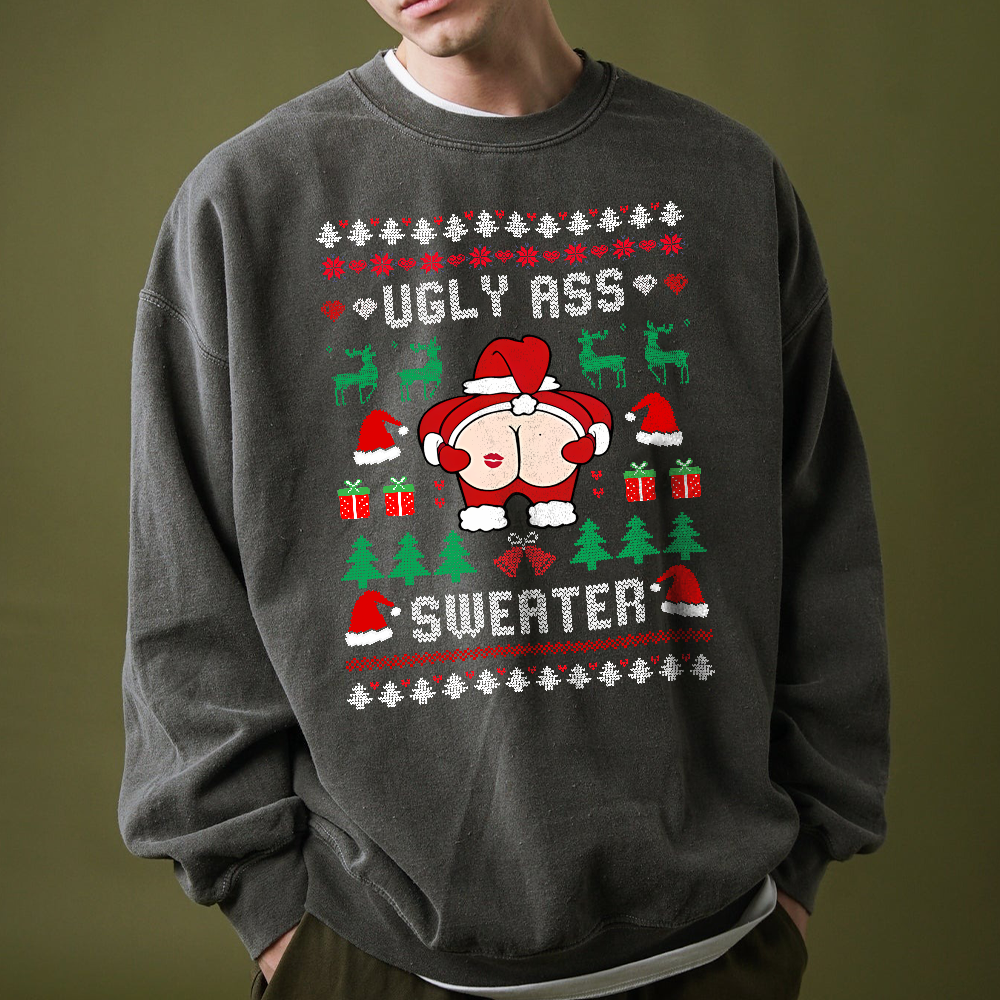 Santa I’m Playing On Your Present Ugly Christmas Sweater, Funny Santa Clause Sweater, Xmas Holiday Ugly Sweatshirt