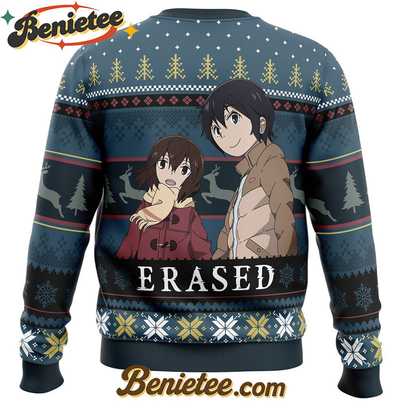 Looking for a gift that truly speaks to the soul of an “Erased” enthusiast? Our Satoru and Kayo Ugly Christmas Sweater is the ultimate present for yourself or the special fan in your life. Featuring a design that blends the iconic imagery of Satoru and Kayo with traditional Christmas motifs, this sweater is a testament to enduring friendships and the power of second chances, themes central to the anime. The comfortable, high-quality fabric ensures you’ll stay warm while spreading holiday spirit. Don’t miss out on owning a piece of “Erased” memorabilia that’s both stylish and festive. Add this charmingly “ugly” sweater to your collection and relive the emotional journey of Satoru and Kayo this Christmas. Purchase now and bring a piece of their story into your holiday celebrations!