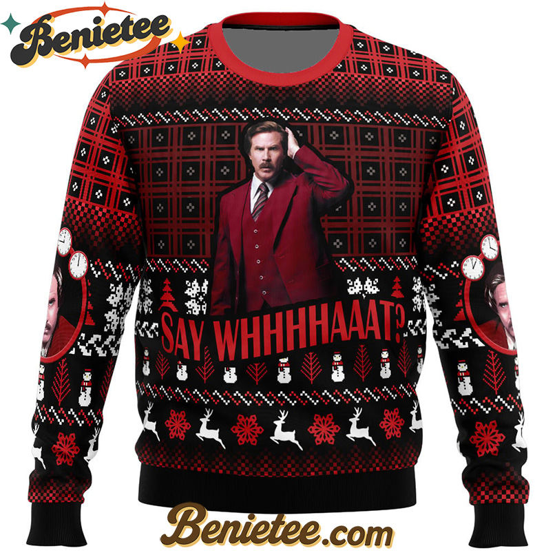 Unleash Your Inner Burgundy: Buy the “Say Whhhhaaat Anchorman” Ugly Christmas Sweater Now!