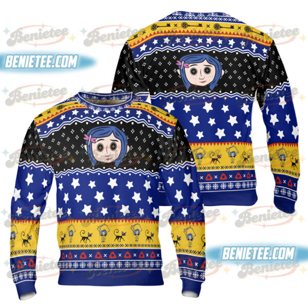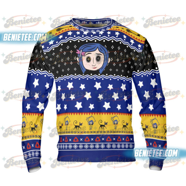 Scary Ragroll Sweatshirt, Cora Button eyes UGLY Sweatshirt, Bleached button doll gift, Movie Be Wise Be Brave, Coraline Jones Long sleeve