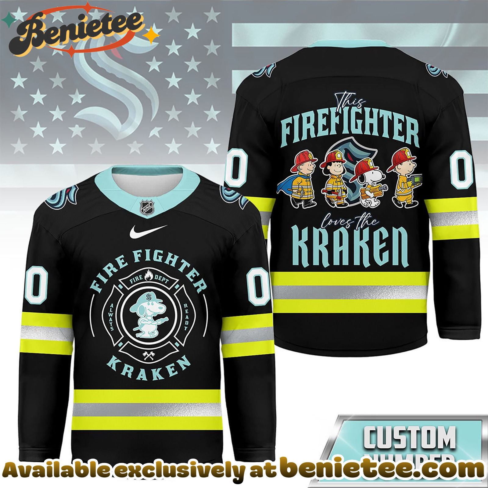 Seattle Kraken Premium NHL Snoopy Firefighter Hockey Jersey