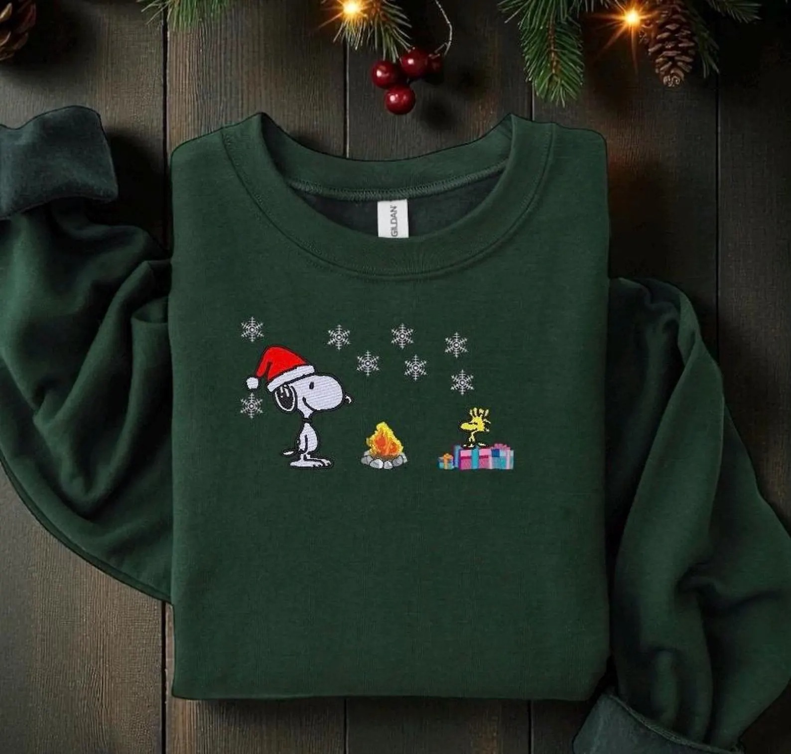 - This item: Snoopy Dog Christmas Embroidered Sweatshirt, Cozy Holiday Sweatshirt, Cartoon Winter Shirt, Festive Tree Embroidery