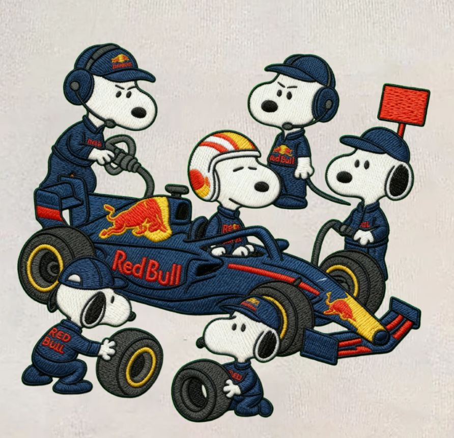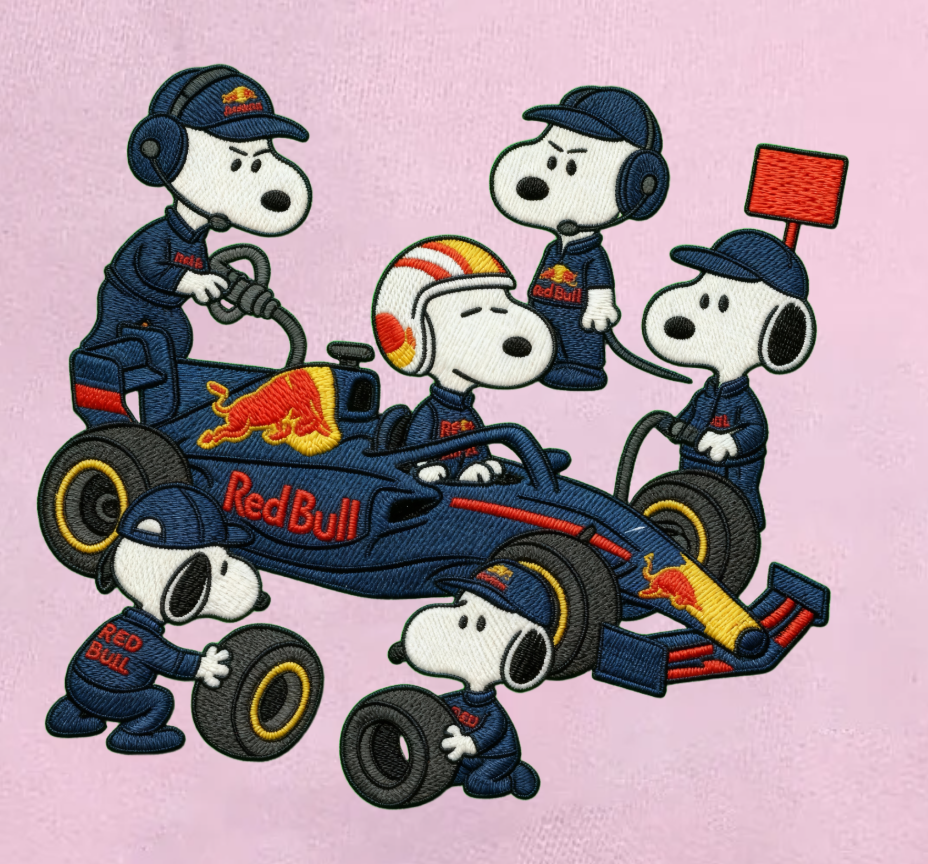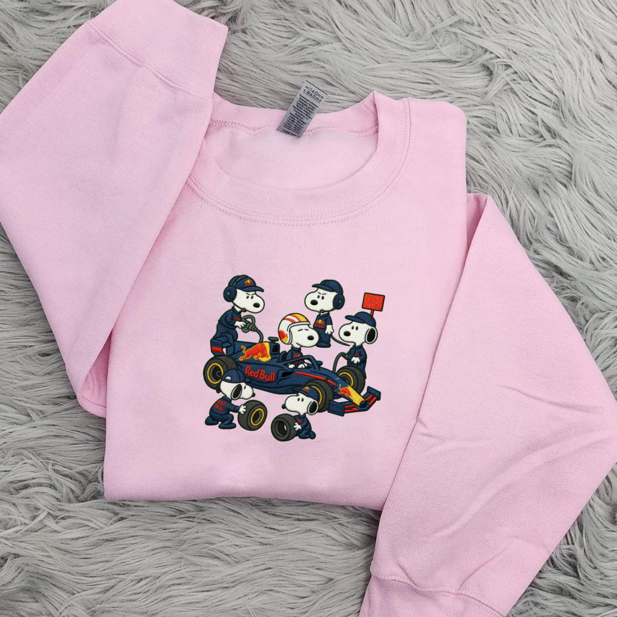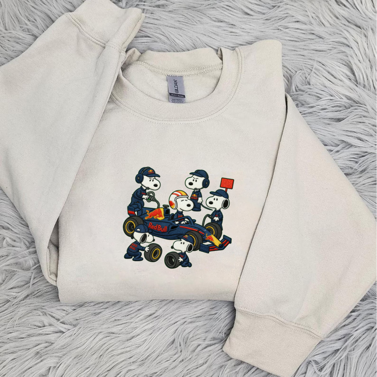 Snoopy Red Bull Pit Embroidered Shirt, Formula 1 Mechanic Embroidered Shirt