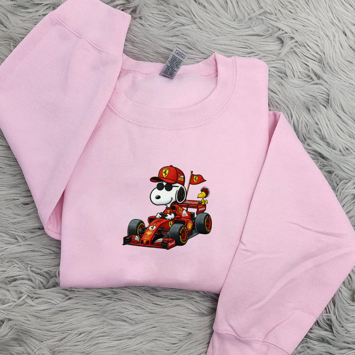 Snoopy Red Bull Pit Embroidered Shirt, Formula 1 Mechanic Embroidered Shirt