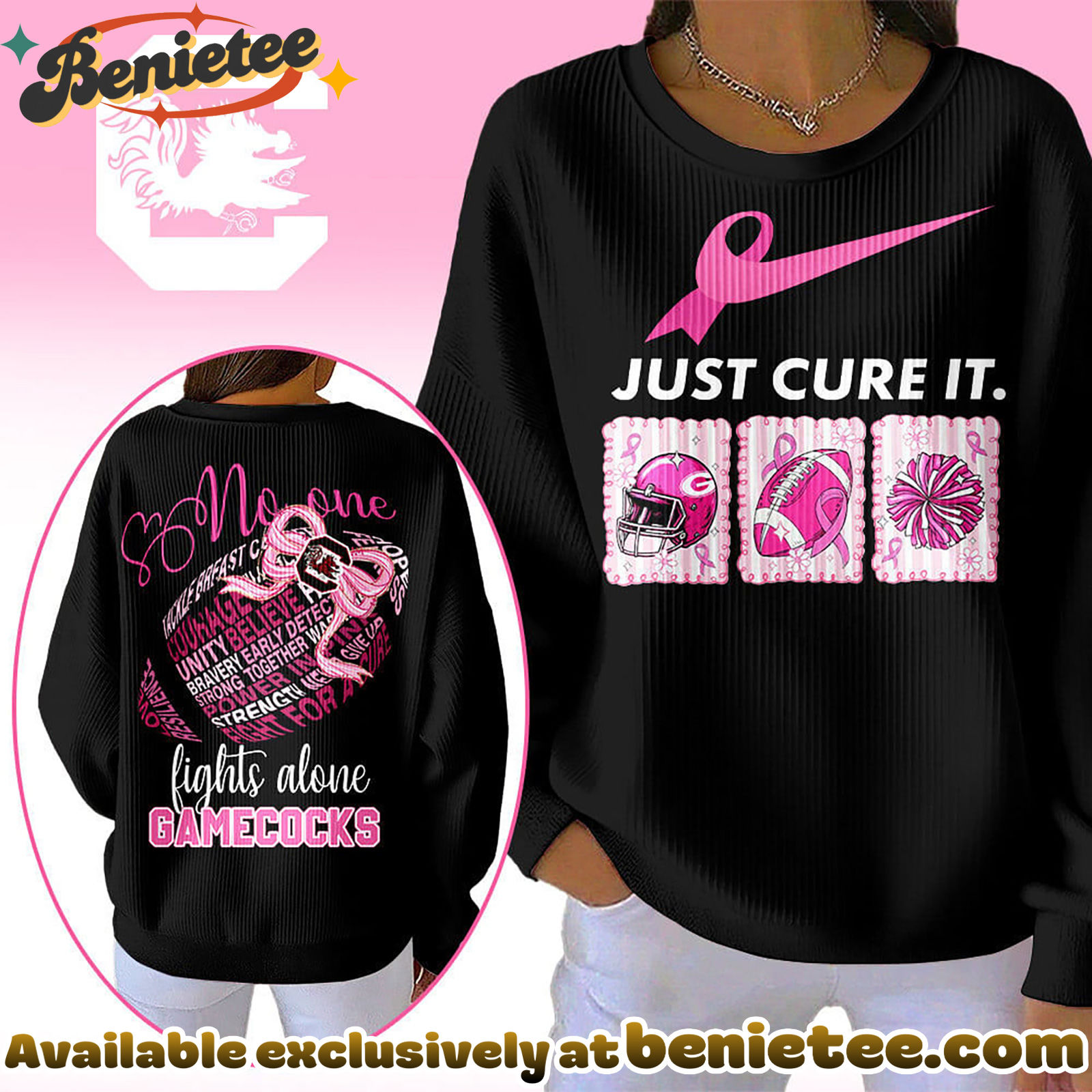 - ⚙️ Made to Order: Each South Carolina Gamecocks Premium NCAA Breast Cancer Awareness T-Shirt And Sweatshirt is created individually after purchase to ensure a fresh, premium finish.