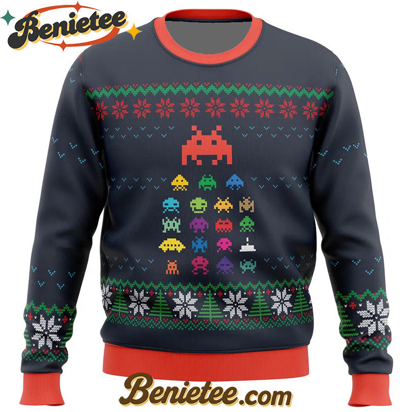 Step back in time and embrace the festive spirit with a touch of vintage arcade magic! Our Space Invaders Ugly Christmas Sweater is the ultimate conversation starter for any holiday gathering. Featuring iconic pixelated aliens and classic gameplay elements, this sweater is a nostalgic nod to the golden age of video games. Perfect for gamers, retro enthusiasts, or anyone looking to add a unique and humorous twist to their holiday wardrobe. Crafted for comfort and designed to stand out, this sweater is sure to bring smiles and holiday cheer. Don’t miss out on this limited-edition festive design – grab your Space Invaders Ugly Christmas Sweater today and conquer the holiday season with retro style!