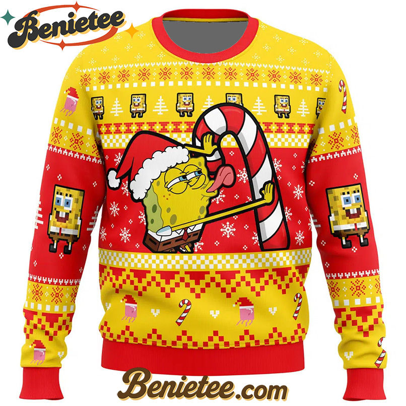 Shop the SpongeBob Licking SpongeBob Squarepants Ugly Christmas Sweater for Ultimate Holiday Fun!