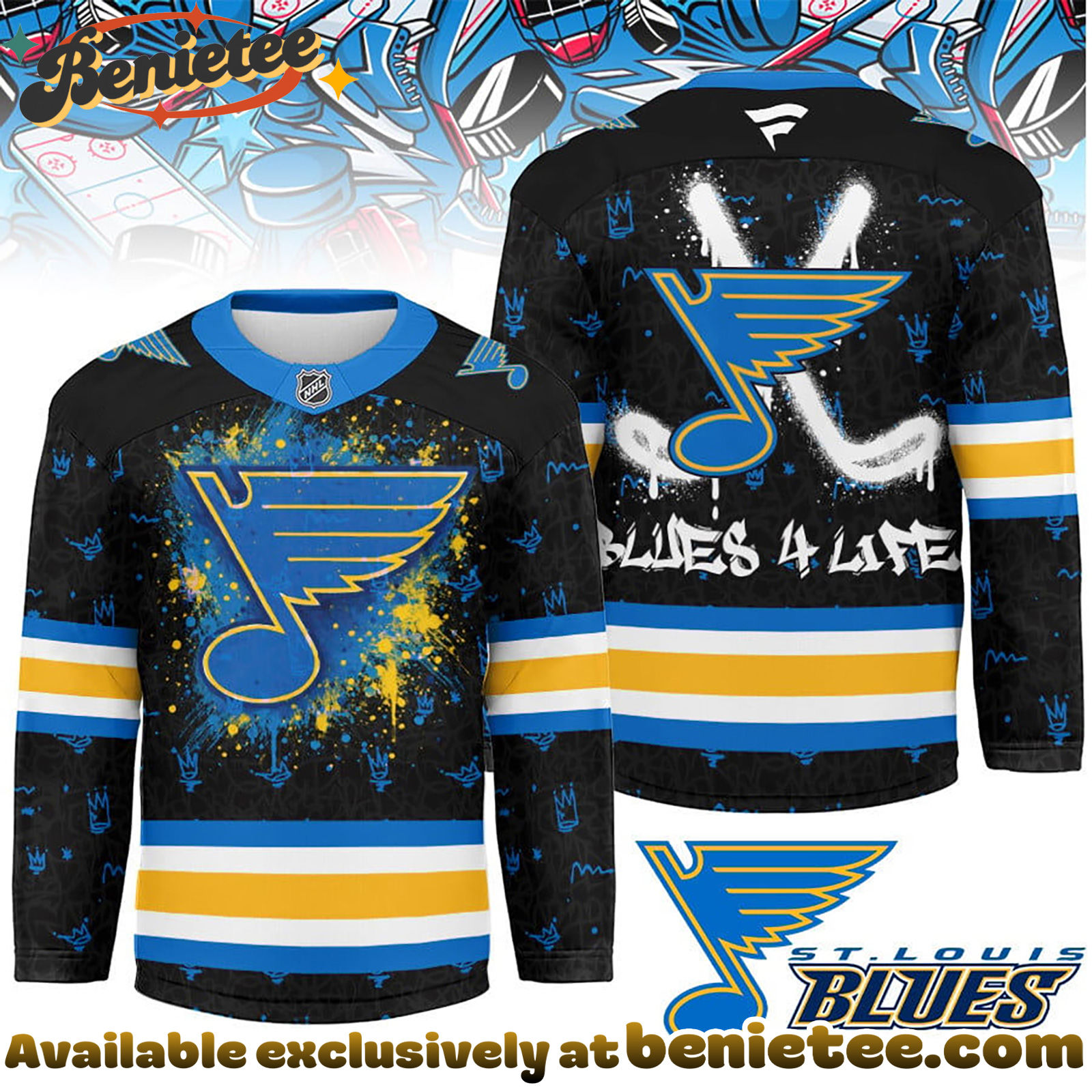 Score a Goal with the St. Louis Blues NHL Graffiti “My Team 4 Life” Hockey Jersey Today!