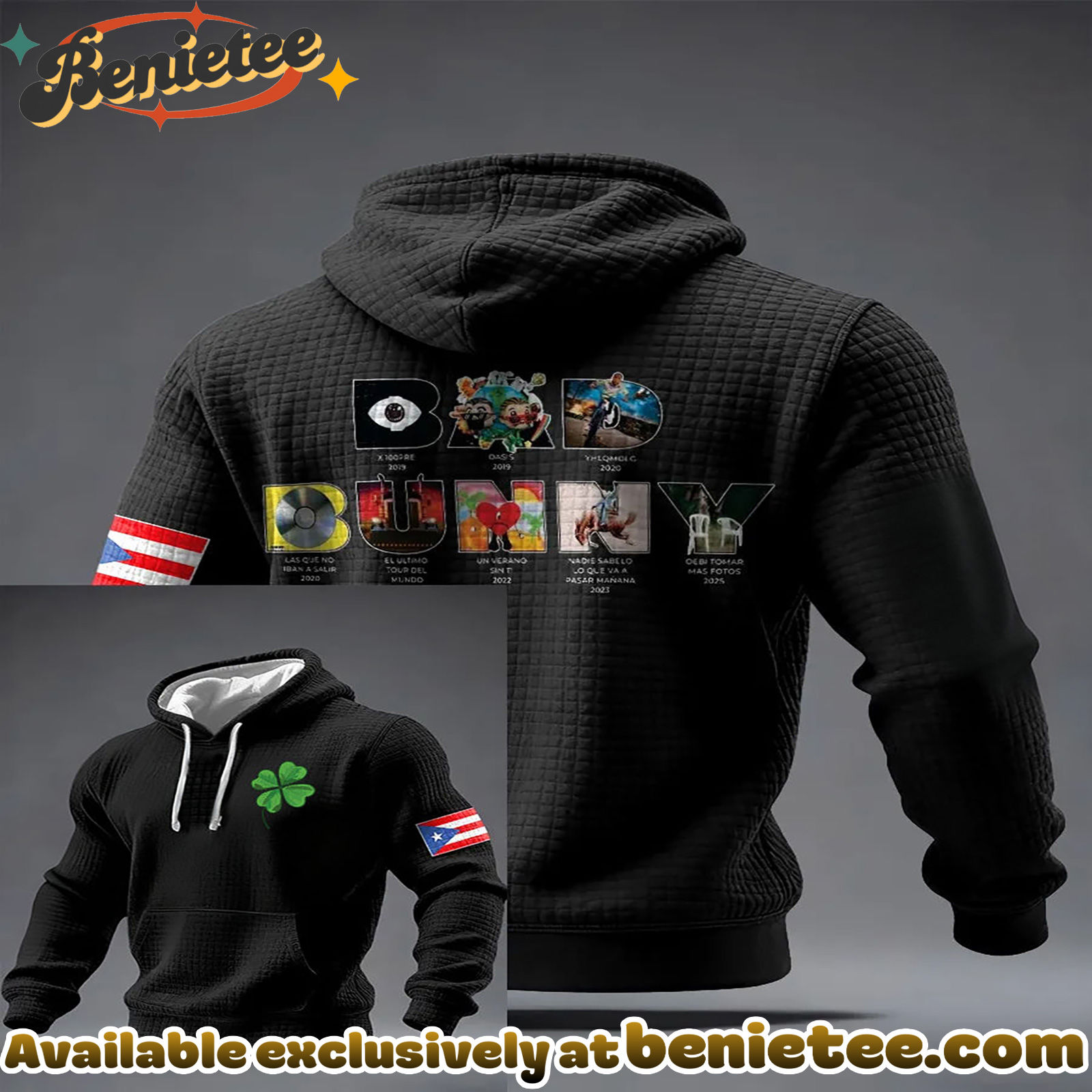 St. Patrick’s Day Meets Reggaeton Royalty: Shop the Bad Bunny Print Hoodie Now!