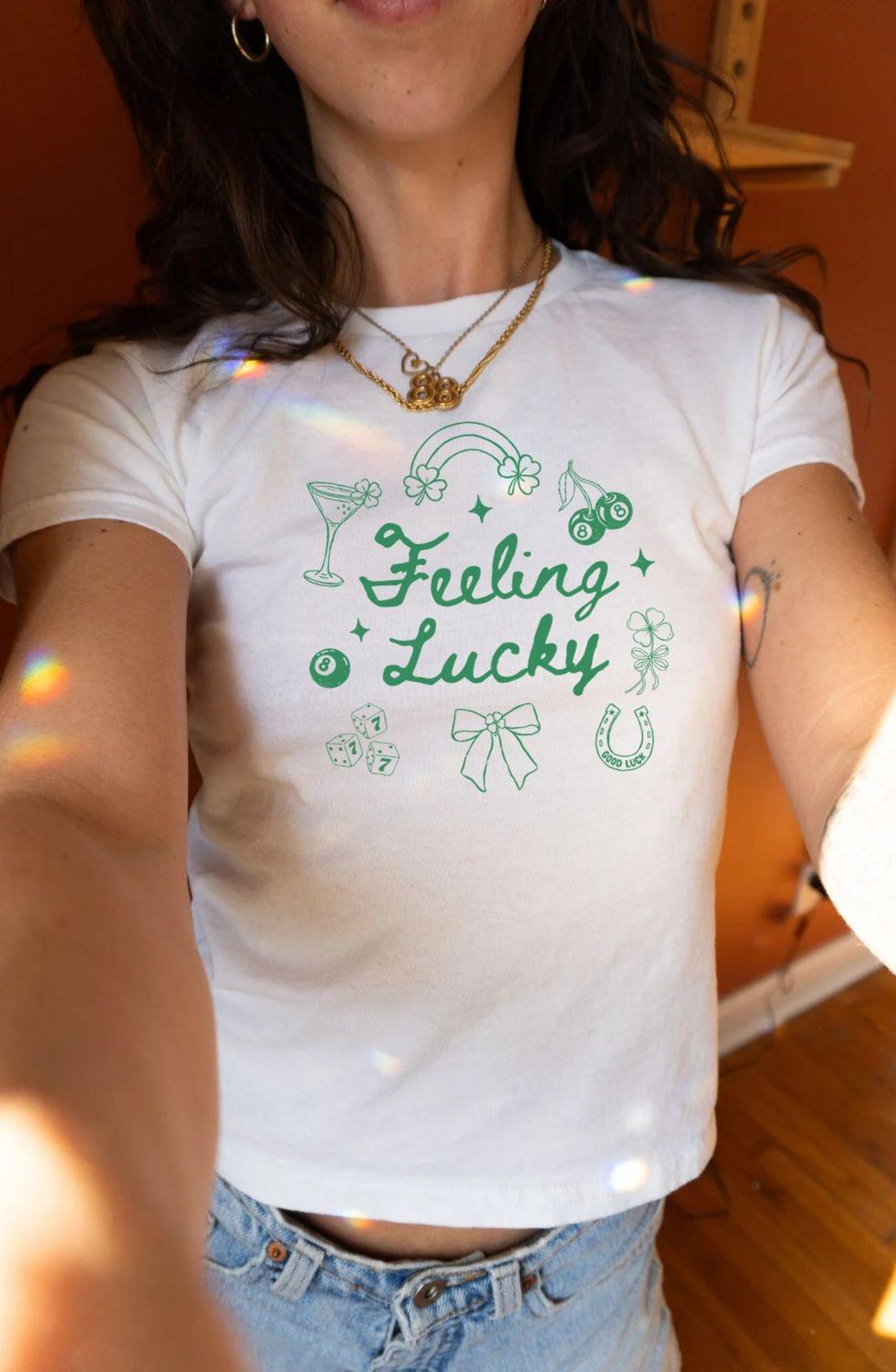 St. Patrick’s Day Baby Tee, St Pattys Day Apparel, Irish Shirt, Feeling Lucky, St Patricks Day Croptop