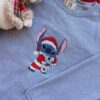 Stitch Christmas Lights Embroidered Sweatshirt, Xmas Stitch Embroidery Sweatshirt