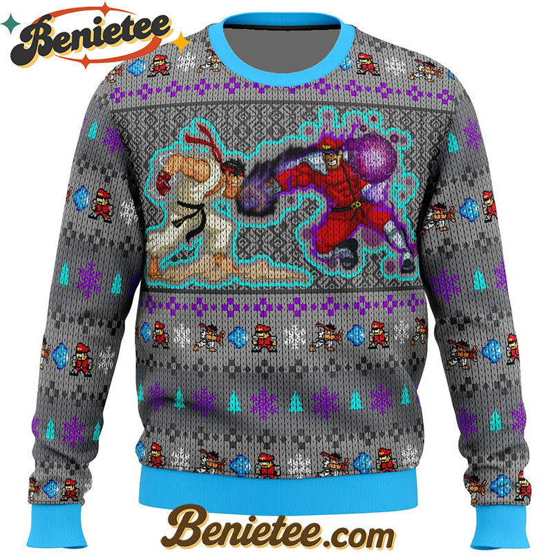 Celebrate the Holidays with Fierce Style: Buy the Street Fighter Ryu Vs. M. Bison Ugly Christmas Sweater Now!