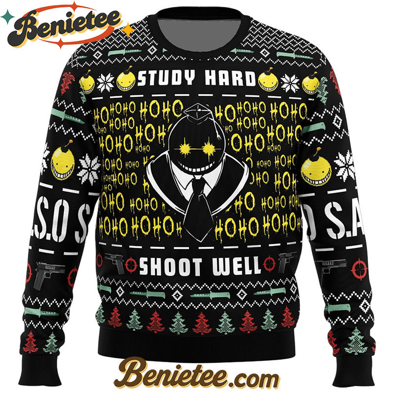 Why Choose Study Hard Shoot Well Assassination Classroom Ugly Christmas Sweater?