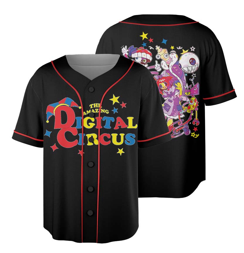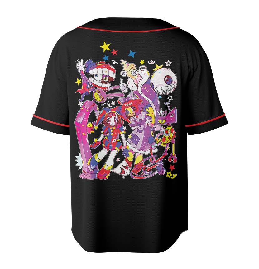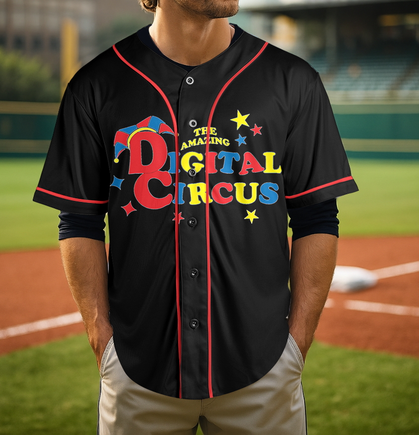 - This item: Surreal Circus Inspired Baseball Jersey, Trippy Digital Character Style Jersey, Whimsical Cartoon Aesthetic T-shirt