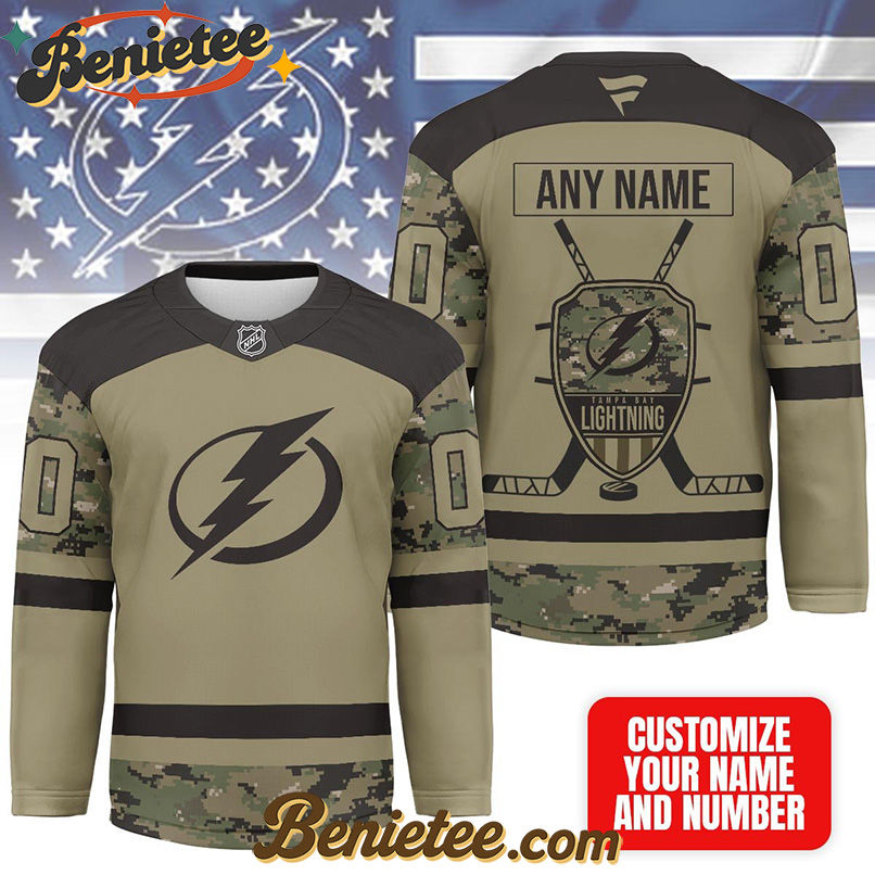 Show Your Support for the Tampa Bay Lightning with Our Premium NHL Camo Army Hockey Jersey!