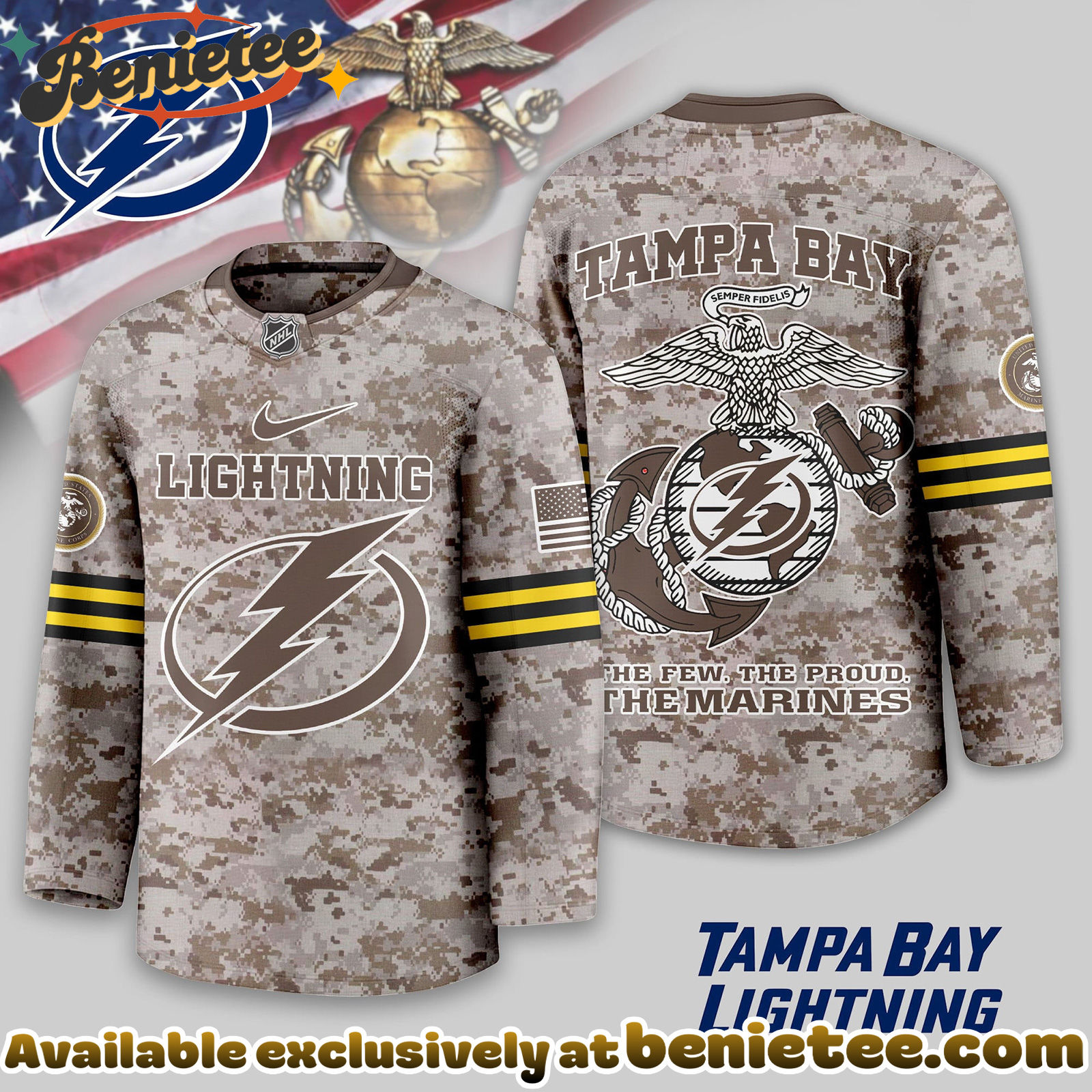 ⚡ Customize your Tampa Bay Lightning Premium NHL U.S.M.C Hockey Jersey now and wear your hockey passion with confidence and style! 🏒🔥