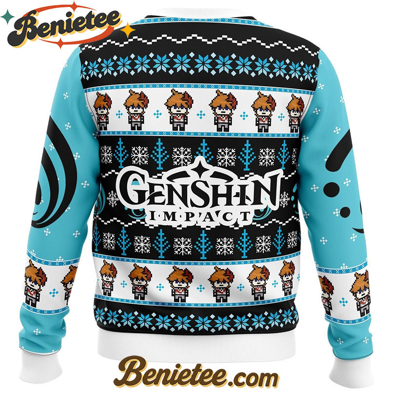 Embrace the Holiday Chaos with the Tartaglia Childe Genshin Impact Ugly Christmas Sweater!