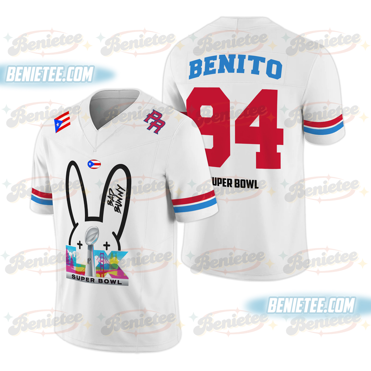 Team Benito Football Jersey, Bad Bunny Fan Shirt, Benito Puerto Rico Football Jersey, Boricua Benito Bowl LX Halftime 2026 Jersey
