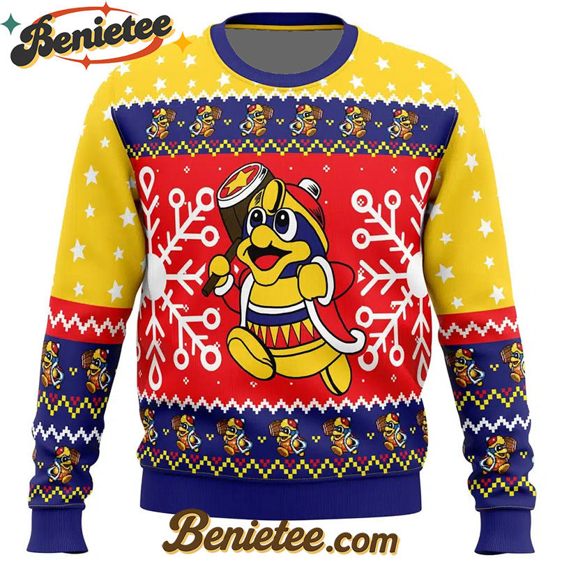 Get ready to dominate your holiday gatherings with a touch of Waddle Dee flair! This isn’t just any ugly Christmas sweater; it’s a statement piece for the discerning fan of the Kirby universe. Featuring the iconic King Dedede in all his festive, albeit slightly menacing, glory, this sweater is perfect for anyone who appreciates a good dose of retro charm and playful mischief. Whether you’re attending an ugly sweater party, lounging at home with a cup of hot cocoa, or simply want to showcase your love for Dream Land’s self-proclaimed king, this garment is designed to bring smiles and holiday cheer. Crafted for comfort and designed to stand out, it’s the ultimate way to celebrate the season with a character that’s as memorable as your holiday spirit. Don’t miss out on adding this unique, collectible piece to your festive wardrobe – buy yours today!