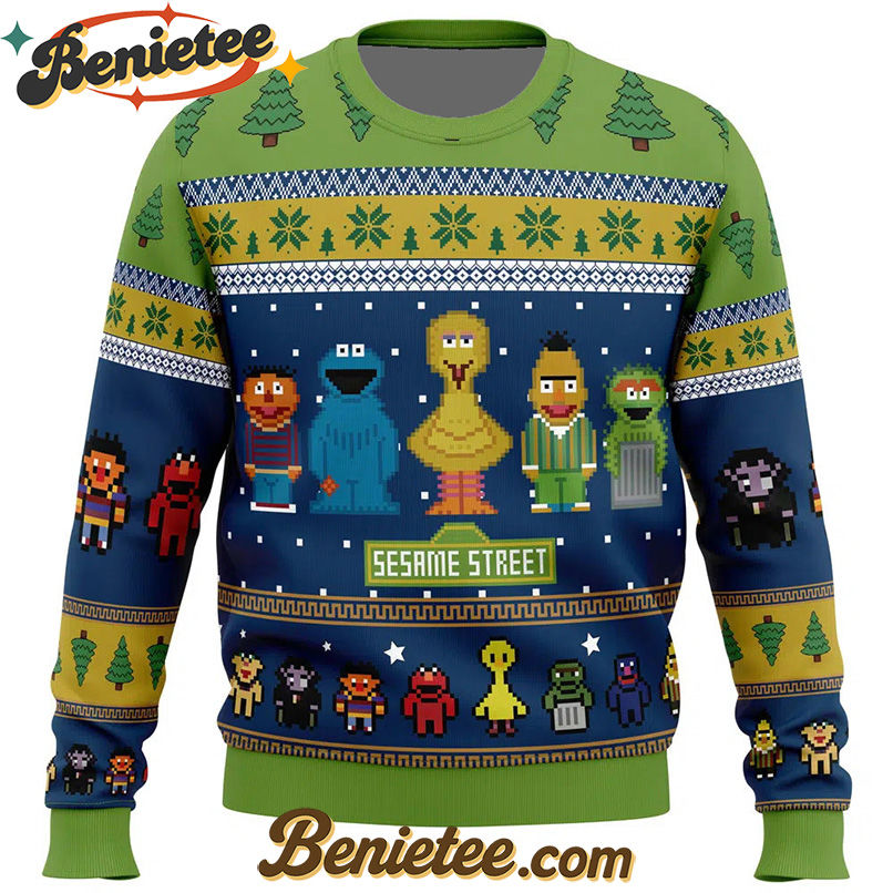 Embrace the Nostalgia with The Main Characters on Sesame Street Ugly Christmas Sweater!