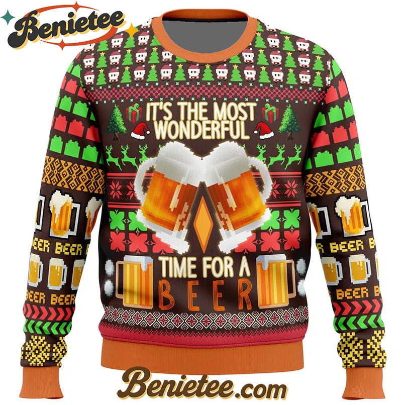 Celebrate the season with the Time for a Beer Ugly Christmas Sweater — a playful, cozy ugly sweater made for joyful holiday moments.