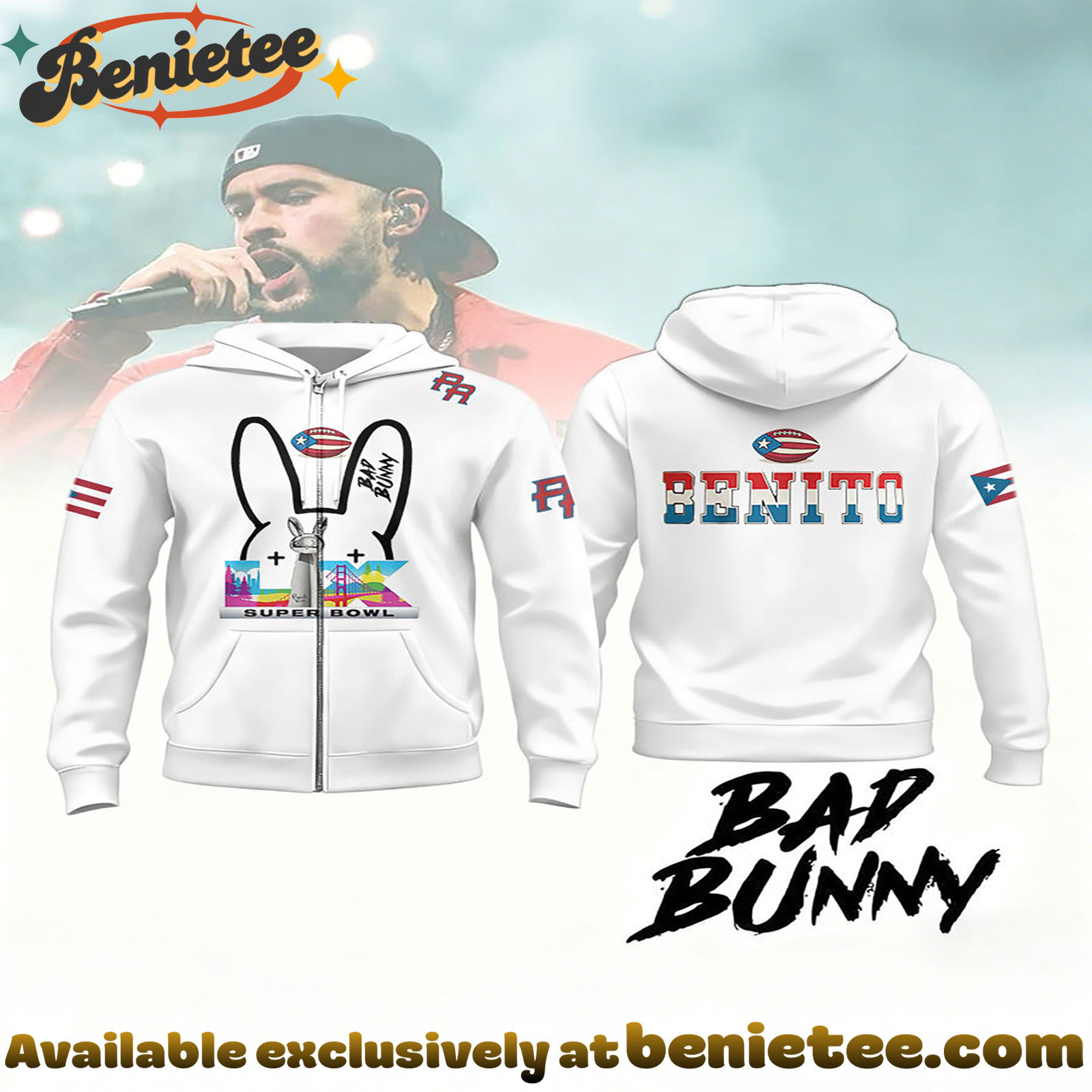 Experience Unrivaled Style with Our Super Bowl & Bad Bunny Hooded Jacket – Ver 3!
