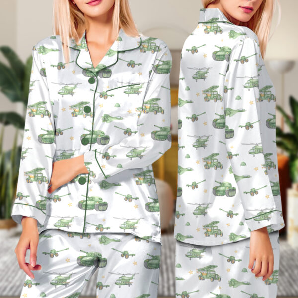 United States Veteran Pajamas Set Long, Tanks & Helicopter Graphic, Patriotic Military Tee