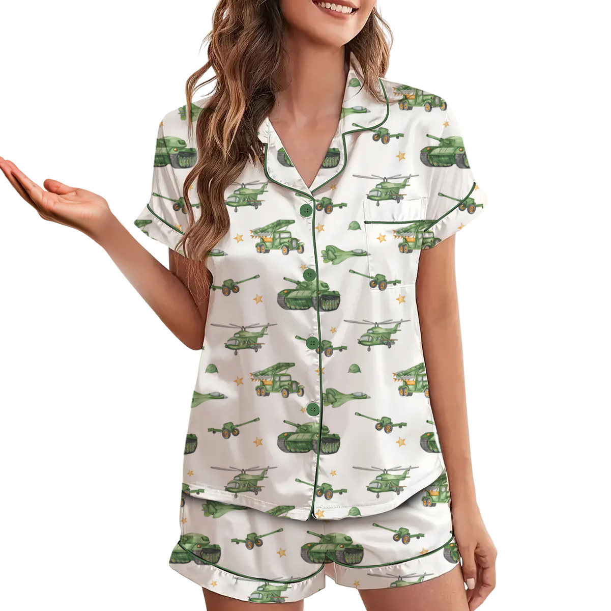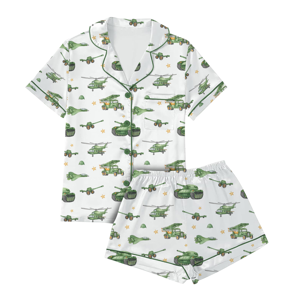 United States Veteran Pajamas Set Short, Tanks & Helicopter Graphic, Patriotic Military Tee