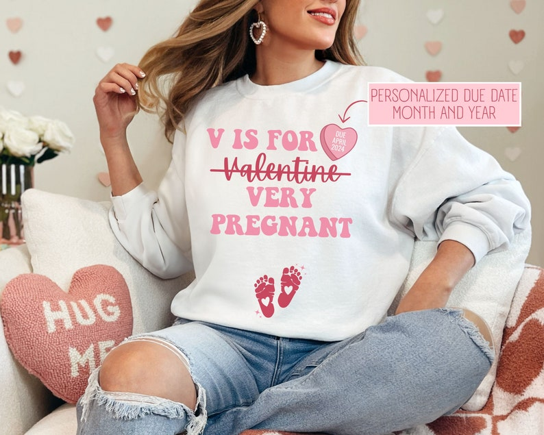 - This item: Valentine's Day Pregnancy Announcement Sweatshirt, Customize Due Date/Month/Year, Gift for Expecting Mom, Customize for twins